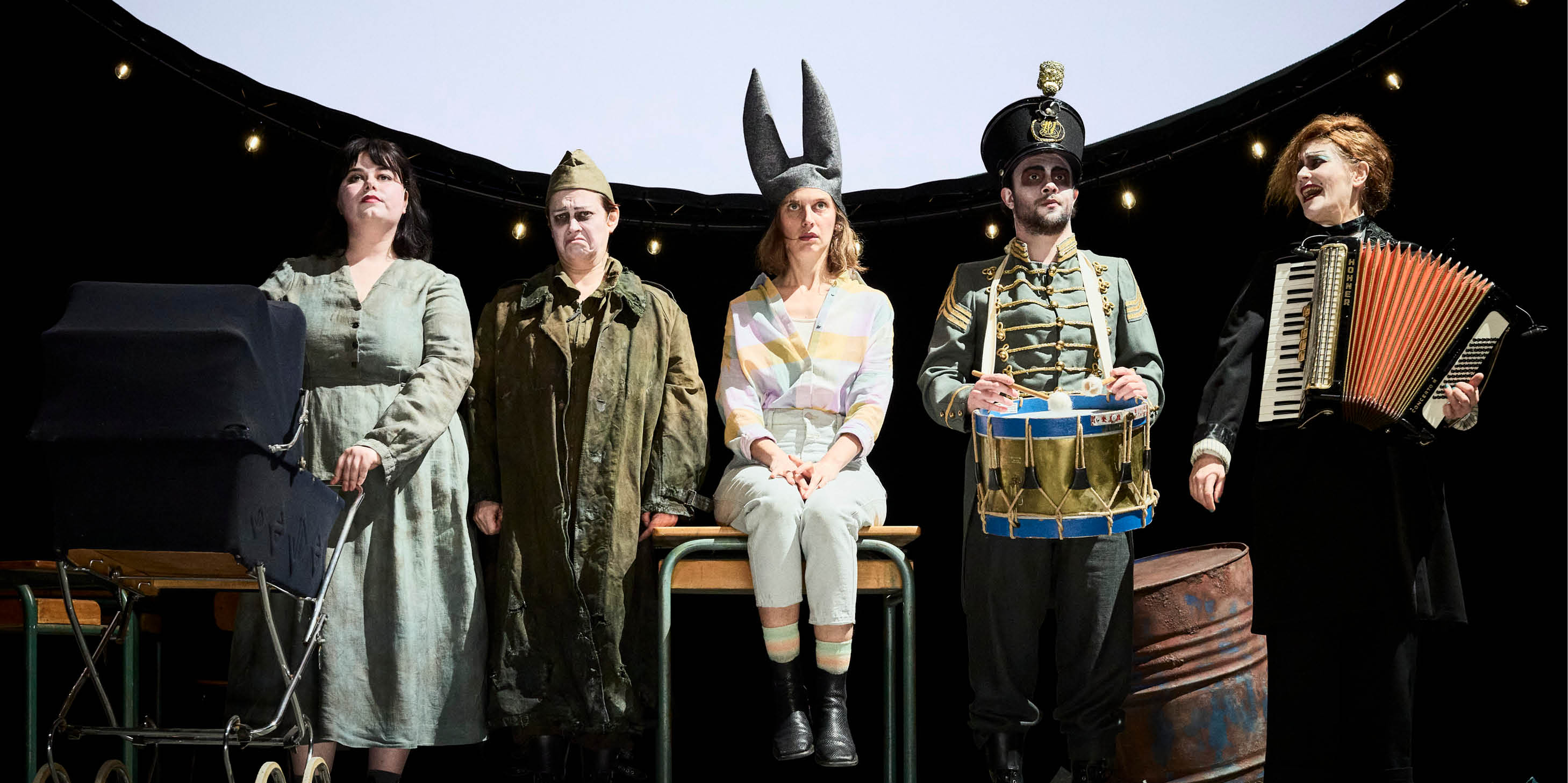 Dès la rentrée, Benoît André m’invite régulièrement à La Filature. Je rencontre le public mulhousien, je tisse des liens avec les spectateur·rices et avec l’équipe de La Filature. Je chante avec l’Orchestre National de Barbès qui m’accompagne sur mes compositions, je gonfle mon bretzel géant avec Sophia Aram et Lilia Benchabane dans les loges avant de le faire passer comme un grigri dans la salle géante de La Filature ; puis quelques mois plus tard je joue aux côtés de Rodolphe Burger et ses acolytes ; puis encore en itinérance avec Ladilom ; et enfin, récemment, dans la salle modulable avec Tout le monde est là de Simon Delattre. Sacré cheminement. Mon projet de création reste en suspens… Puis une amie chère, Calypso Baquey, me pousse à déposer un dossier au théâtre de l’Aquarium à Paris, haut lieu du théâtre musical. Et me voici, impatiente de partager La Folie Élisa, à l’ancrer à La Filature puis à le jouer partout…